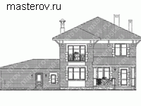 Фундаменты – монолитная ж/б плита Наружные стены – газобетон или кирпич Перекрытия – монолитные ж/б над 1 ,над 2 этажом по деревянным балкам Кровля – чердачная стропильная конструкция Покрытие кровли – битумная черепица, возможна металлочерепица или натуральная Наружная отделка – облицовочный кирпич + штукатурка Отделка цоколя – облицовочный камень